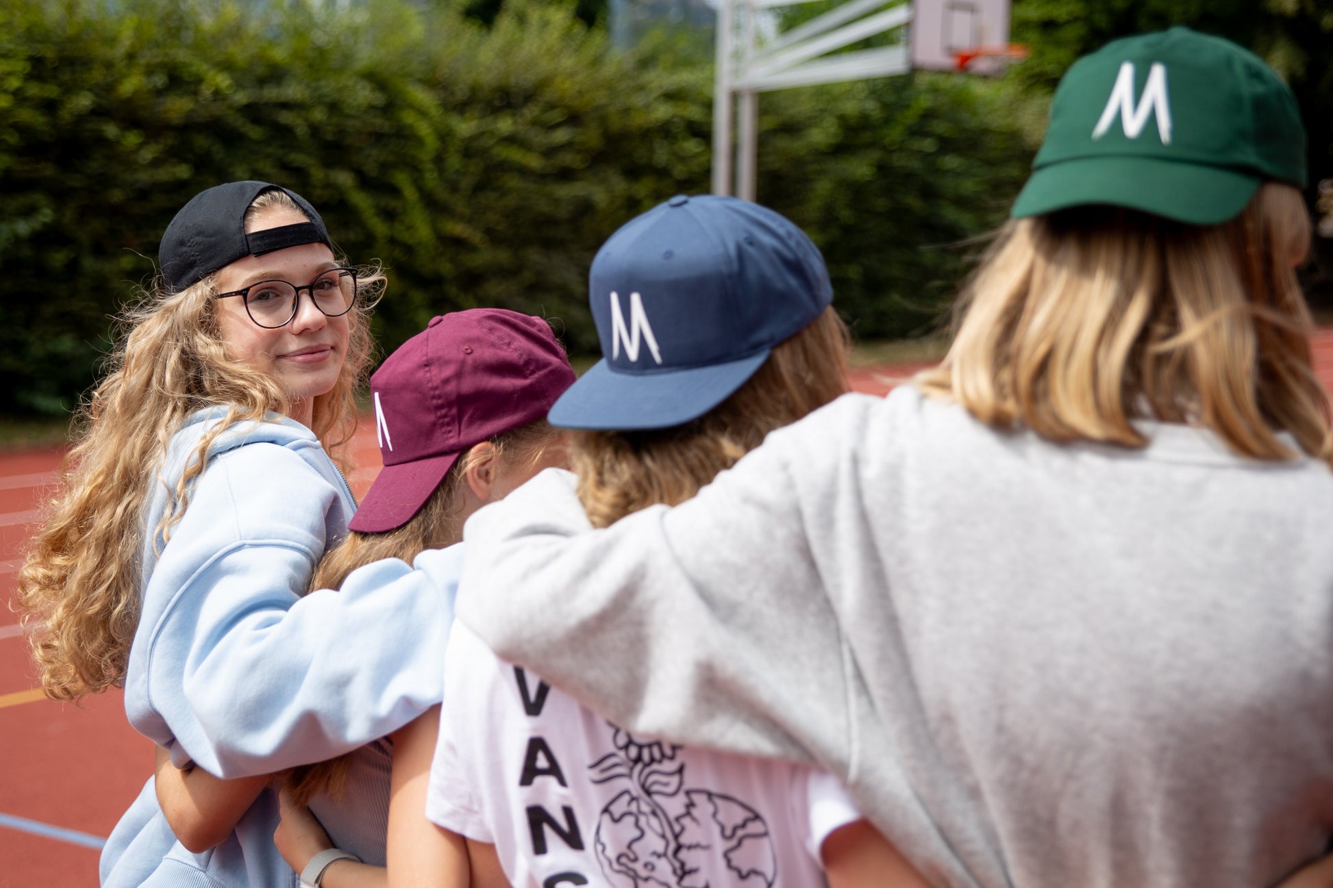 Resi und Theresa tragen beide das Cap in der Größe Junior und der Farbe navy/grün.
